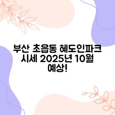 부산시 부산진구 초읍동 혜도인파크에비뉴연지 아파트의 2025년 10월 시세에 대한 예측 시나리오를 다양한 관점에서 분석해 보겠습니다.
