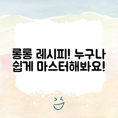 여러분도 쉽게 따라 할 수 있는 롱롱 죽겠지의 다양한 변형 레시피를 소개합니다. 각 단계별로 따라해 보세요!