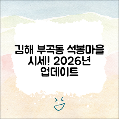 이번 가이드는 2026년 1월 경상남도 김해시 부곡동 석봉마을8단지부영 아파트의 시세 예측을 위한 단계별 분석 방법을 제시합니다.