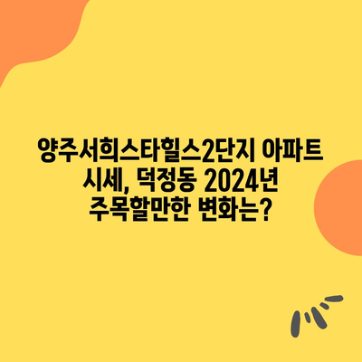 양주서희스타힐스2단지 아파트 시세, 덕정동 2024년 주목할만한 변화는?